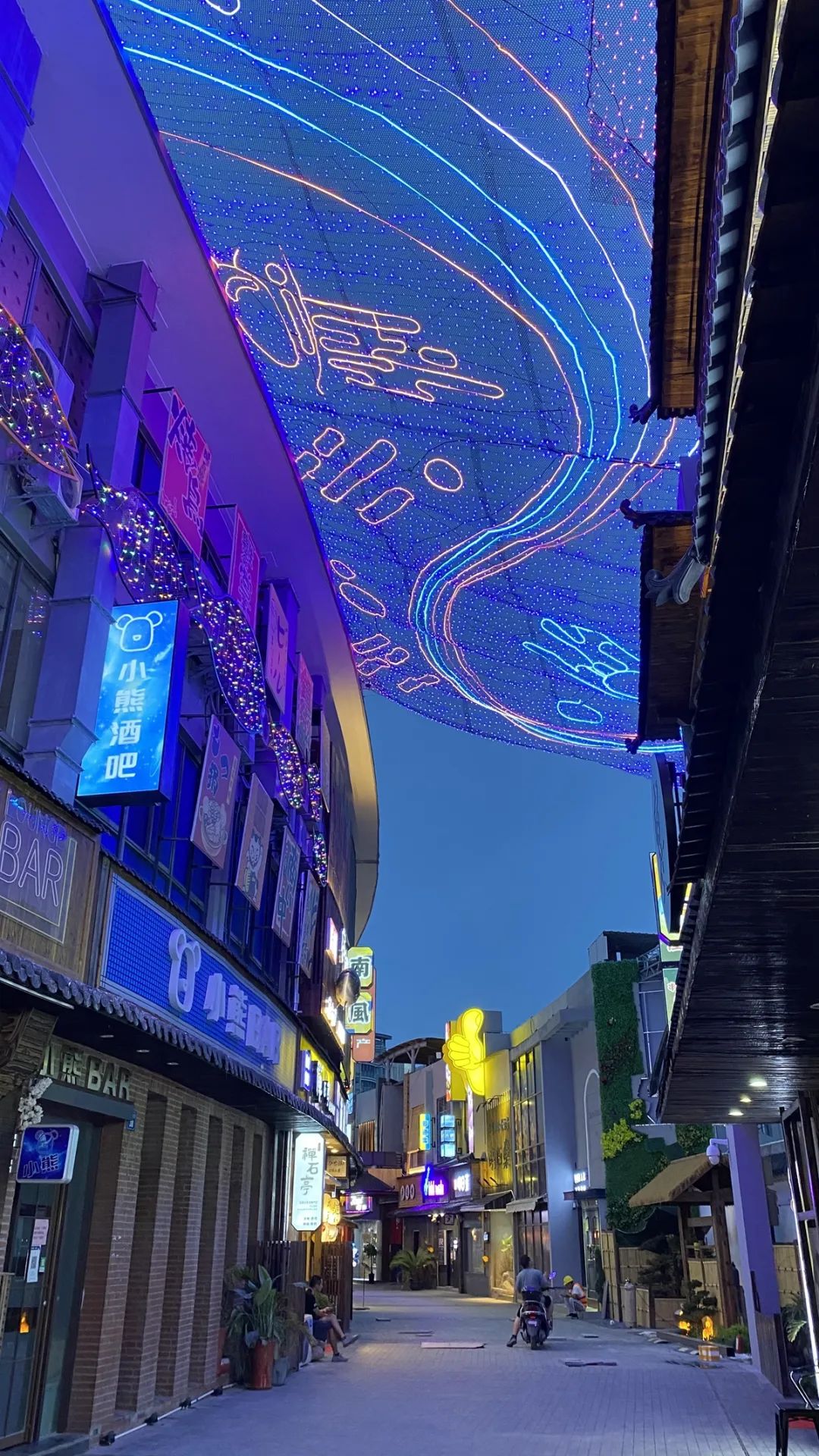 有些地方还装饰了灯光天幕,绚丽夺目。