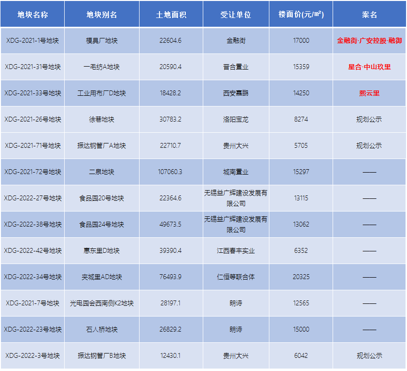 目前,梁溪区内已有3新盘案名公布,分别为金融街广安控股融御、星合·中山玖里、熙云里,3盘入市计划也已提上日程。除上述3个项目外,梁溪区还有10宗地块未转化为项目,13宗地块计容面积超80万平米,其中仅二泉地块面计容近15万方,这也是2020年以来山北盛岸片区推出的面积最大的一宗宅地。